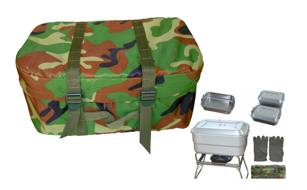外形尺寸:380×260×240mm 總質(zhì)量:7kg 使用燃料:固體燃料及木材等 加工量: 一小時可完成12人主、副熱食工作 構成明細:攜行包1個;主食鍋1套;副食鍋1套;支架2付;儲水袋2條;炊事用具1套